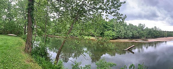 Double-lot Big Sugar creek waterfront log cabin, with additional access to waterfront lot 5 reserved for River Valley Estates property owners; the upstream section of gravel bar near Sugar Island campground. Large 12 ft x 36 ft screened-in sleeping porch 35 feet from Big Sugar Creek. Unfinished upper half-loft, about 24 x 12.