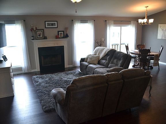 Welcome Home to this Stunning Move in Ready Three Bedroom Open Floor Plan Ranch in Riverdale Village Subdivision. Has a Fantastic Divided Floor Plan. Walk through the Entry Way to View the Dark Wood Laminate Flooring that Flows through the Living/Dining/ Kitchen Areas. The Large Kitchen has Newer Stainless Steel Appliances, Double Oven and a Large Island. The Living Room offers a Vaulted Ceiling , Plenty of Light and a Wood Burning Fireplace. The Divided Floor Plan Provides a Private Master Bedroom and Bath with Walk in Closet. Convenient Main Floor Laundry with Custom Shelving. This Home has a Large Walk Out Basement W/ Large Windows Providing the Opportunity to add Additional Living Area. Has Rough in Plumbing and sump/pit. The 3 Car Oversized Garage is finished/painted/insulated/drywalled with epoxy floors. Sidewalk with Stone Landscaping, Leading from the Over sized Driveway. It has a Neat, Great Curb Appeal! Enjoy the Subdivision Amenities Including Parks and Ponds!