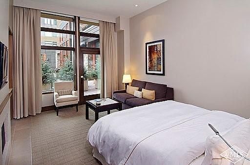 Exceptional studio conveniently located on the first floor with 11.5 foot ceilings and extended glass adding volume to the space. Walk out on the patio and enjoy views over the pool to the Eagle River and Beaver Creek ski slopes. Enjoy the privacy of your fully furnished condo or enjoy all the on-site amenities: full-service spa, wellness and fitness center, ski valet, concierge, year round heated saline pool, 3 infinity hot tubs, valet parking. And room service is just a call away.