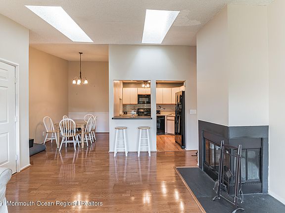 Third floor penthouse unit in the highly sought after Woodland Hills Complex. Desired bright, corner location. Wood laminate flooring throughout. Cathedral ceiling & skylights enhance the open floor plan. Large master bedroom suite with huge walk-in closet & master bath. Second bedroom has double closet. Spacious and bright living room with sliding glass doors to your private patio overlooking lush, private, setting. Central Air. Laundry room inside unit (washer & gas dryer included). Pet friendly. 1 assigned parking space plus plenty of additional parking. Pool, clubhouse and playground. Conveniently located Minutes to train station, bus, shopping, local eateries and major highways (Rts. 80, 287, 23 and 46).