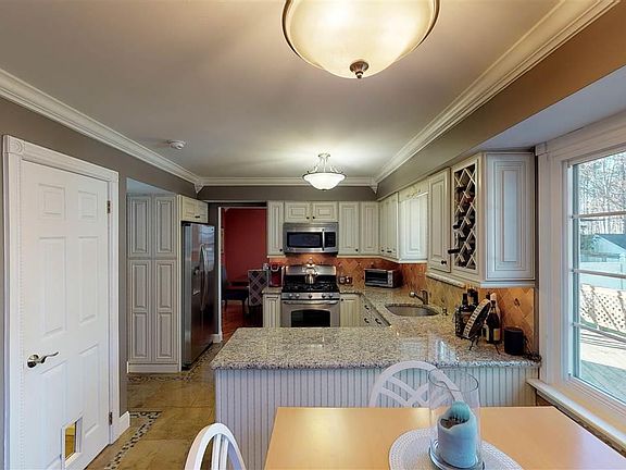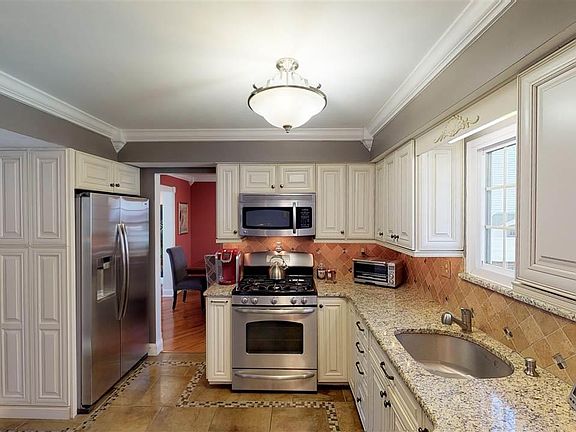Immaculate, well maintained and tastefully decorated home features 4 yr old kitchen with crown molding, granite counters, tumbled marble backsplash, custom cabinetry, 5 burner gas range and beautiful tiled floors. Formal living room and dining room with hardwood flooring, family room with skylights and cozy natural wood fireplace. All new windows by Frank Vincent, new doors too. Good sized bedrooms with ample storage and lots of natural light.Master bath is fully tiled and shower has 6 body sprays and rain shower and hand held. Full basement is partially finished with home gym in one section and plenty of storage in the other! Garage features new door, auto opener, shelving. 12 year old roof, sprinklers front and back, shed, vinyl fenced yard with gate to the woods behind the home. Multi level deck for entertaining and extra landscape lights. Brand new gutters and gutter guards. The yard was thoughtfully planted with color all four seasons. The mature foliage will surely impress you!