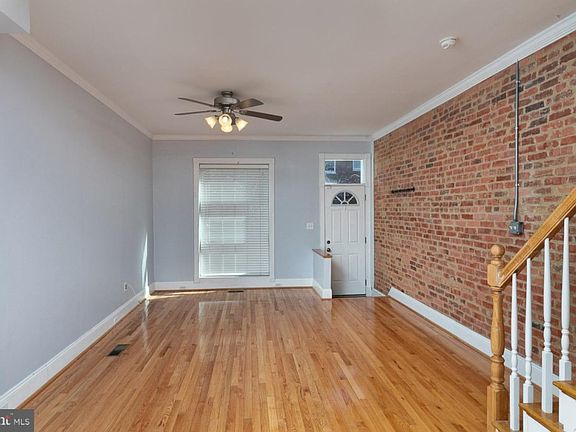 In the heart of Patterson Park, on a beautiful brick street you'll LOVE this 2 bedroom, brick front rowhouse just steps from the park! Open floor plan with hardwoods and ceramic tile. This home features high ceilings, crown molding, gourmet kitchen with stainles steel appliances, a full basement, balcony off rear bedroom and fully fenced rear yard with patio.