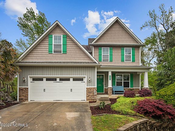 Your search is over! Ideally located in the beautiful neighborhood of Dogwood Lakes, this 4 Bedroom, 3.5 bath home welcomes you in with its lush landscaping on 1.02 acres. Upon entering the home, you will find a perfect spot for a home office or formal sitting room. Continue down the hall and the space opens to a large living area with a lovely fireplace to invite you in. Ample built-ins surrounding the fireplace are ideal for your book collection. From the living room, walk into the transitional dining area and directly into the large, functional kitchen. Equipped with stainless steel appliances, dual ovens, gas stove, ample cabinet and countertop space, and a pantry, this kitchen is ideal for entertaining. Upstairs you will find a spacious owner's suite with two walk-in closets, double vanity bathroom, and large tile shower. Two additional bedrooms, a bathroom, a loft/office and a laundry room are included on this level as well. And the best part of all is the fully finished downstairs basement with over 1000 sqft of additional living space! The lower level of this home has endless possibilities! A very large bedroom with a spacious bath has private access to a lovely screened porch overlooking the back yard and pond that can be used as a mother in law suite. There is an additional room that can be easily used as a 5th bedroom and two spacious storage areas on this level as well. A full glass door and plenty of windows leads off the first floor dining area onto a spacious open deck overlooking the huge backyard and the pond. An entertainer's dream, outside you will find an above ground pool with built-in deck, a private basketball court, and a screened in porch off the basement. Situated with beautiful views of Dogwood Lakes pond and ideally located just minutes from Surf City or Hampstead, this home truly has everything you could want and more! Schedule your showing today!