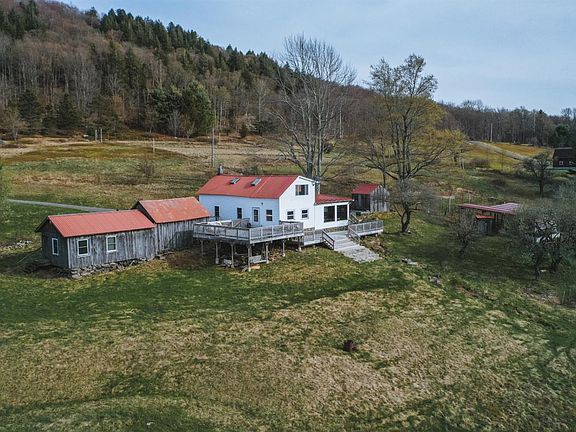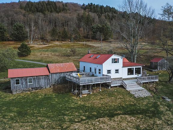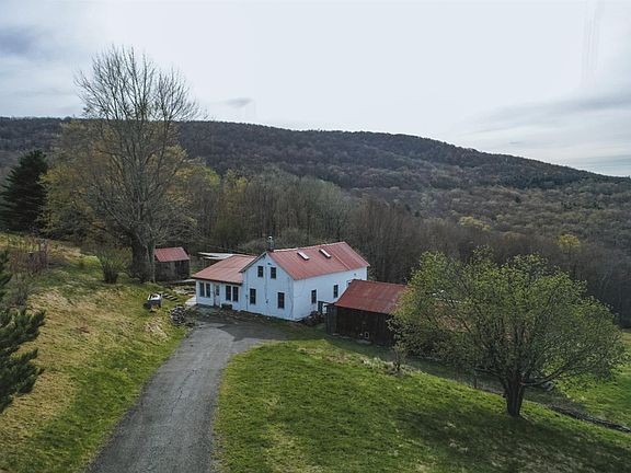 Western-facing views are rarely this panoramic, and almost never are they composed of such pristine untouched wilderness. It is very hard to find total privacy on a town-maintained road. This is a classic 19th century farmhouse and barn, all on 136 PRISTING ACRES. There are meadows filled with wild blueberries, mountain streams, and healthy forests. This property has all of the best things that the Catskills has to offer. Being at the property truly feels like living inside an oil painting. All of this beauty is surrounded by 290 acres of NYS land, and 200 acres that belongs to the beloved Frost Valley YMCA. The house features picture windows and rustic hardwood floors. A recent renovation provides a luxurious master suite. There is also a new garage that provides added storage. The current owner has already started a large fenced-in garden. The parcel extends from the top ridge (where you can see even more views to the East) all the way down to the Derby brook. Several separate mountain springs run down this gentle slope to create the brook down below. There are several amazing potential pond sites. There is 1800 feet of road frontage, including frontage on two separate roads, so there is the potential to build additional structures without detracting from the privacy of the existing house. This property would make the perfect family estate, wedding venue, dream-farm, or destination restaurant. Located only 2 hours from the GW Bridge, close to spectacular hikes, swimming holes, and other outdoor activities. Only 500 feet from the Red Hill Fire Tower trail. The nearby Denman Mountain trail allows access for horses, snowmobiles, biking, and cross-country skiing. Do not miss out on this rare opportunity to own a piece of heaven on earth.