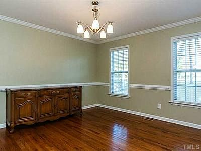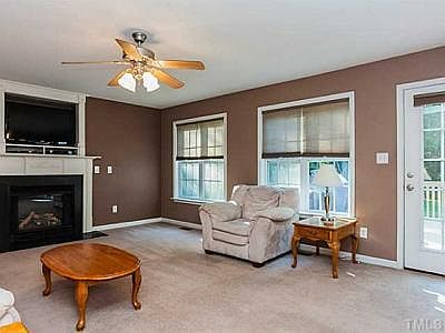 This Transitional 4-Bedroom + Bonus Rm boasts tons of space! Large Ktichen/Breakfast w/island open to spacious family Rm. Formal Dining w/hardwood floors. Master Bdrm features his/hers closets. Large wooded Lot located on Cul-de-sac street perfect for entertaining on Huge Deck around Hot Tub. Storage Shed and so much more! Minutes to I-40 make it convenient to Raleigh!