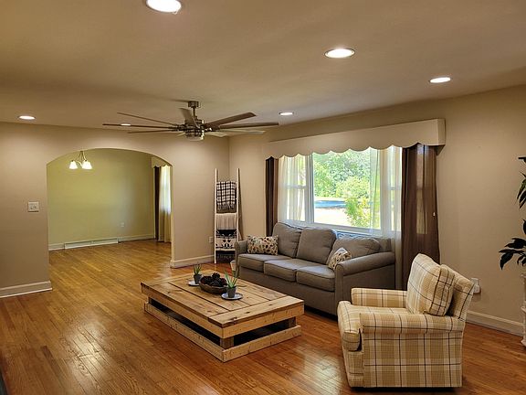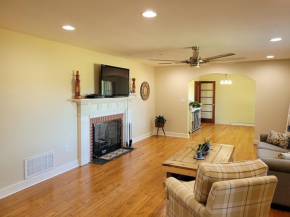 Remodeled Brick Ranch nestled on 5+ ac with private pond and 5 car bay (2 attached, 3 detached). Hardwood floors throughout. Butcher block counters on new cabinets. Wolf appliances. Home has been completely re-wired, new HVAC. Loads of privacy, cleared area for garden, orchard, pasture...let your imagination be your guide. Circular drive with two gates. Potential to subdivide. Completion of grading negotiable.
