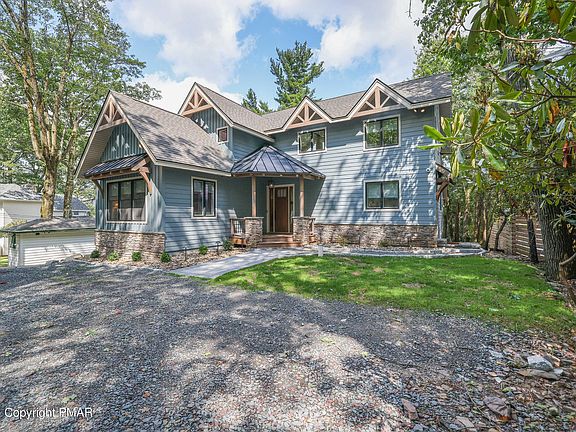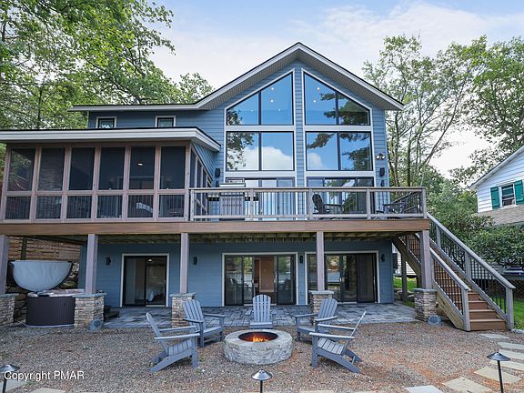 This home isn't just on the LAKE; it EMBRACES it. With a two-story living room with FLOOR-to-CEILING windows offering Uninterrupted Lake Views, an open-concept design that seamlessly blends Indoor and Outdoor living, featuring a PRIVATE DOCK with a bar area for Entertaining, this 2024 CUSTOM BUILT lakefront property is exactly what you've been waiting for! 7 BEDS/ 4 BATHS and just under 4,000 square feet, Rarely does a Property of this caliber grace the market. FULLY FURNISHED with over $100,000 in Furnishings and Decor, this property is ready whether you're looking for a YEAR-ROUND vacation home or a lakefront rental opportunity. TWO primary bedrooms, three story living, Custom Cabinetry, Screened in Porch with perfect for hosting which then leads out to a HOT TUB and Fire Pit overlooking the lake. Lakefront living is redefined here! Property features a whole house speaker system, smart home control systems, a built-in custom bunk room for the little ones, parking for 6 plus cars, 3 fireplaces and a lower level game area and lounge. Located minutes from Route 80, Jack Frost and Big Boulder.