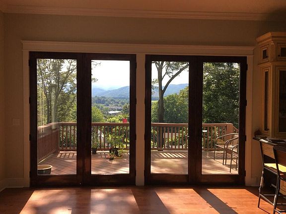Spacious four bedroom, three bath home ideal mountain location. Located on Main Street in Weaverville, NC, this beautiful new home is centrally located to Weaverville's downtown attractions. This home boasts incredible views of the Blue Ridge mountains from the open living room and kitchen area, as well as from the master bedroom and bathroom suite. This two-story home has 4 bedrooms and 3 full bathrooms, including the master suite, and a daylight basement with a large TV (with streaming services, just log into your account) and a ping pong table. The open living/kitchen/dining floor plan makes this an ideal vacation home for a family or group of friends. Enjoy the gourmet kitchen's granite countertops, gas stove and new appliances. You'll be surrounded by original art. Relax in the master bathroom soaking tub as you view the Blue Ridge Mountains. Walk to all of Weaverville's Main Street shops, galleries and restaurants, or drive just 15 minutes to downtown Asheville! This home is also very convenient to all the best hikes, trails, and waterfalls WNC has to offer. Please note there are two street level parking spots in front of the house, and one parking spot in the garage under the house. The driveway is steep and shared with the neighbor. NOTE: The "What I love about this home" section was written by the previous owners, not by us. Renter responsible for utilities. No smoking allowed. 4 months minimum rental; must move out by Jan 15.