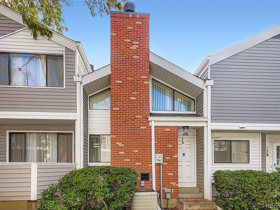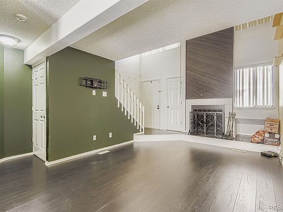 Welcome home to this updated Aurora condo featuring vaulted ceilings, newer hardwood laminate floors, fresh paint, and a cozy wood-burning fireplace. The loft-style primary suite offers a walk-in closet, office nook, and ensuite bath. Enjoy a private fenced courtyard with deck—perfect for relaxing or pets—with two exclusive parking spaces directly behind. The unfinished basement has laundry and adds flexible living or storage space. Conveniently located near the High Line Canal Trail, Aurora Hills Golf Course, I-225, Anschutz Campus, and Town Center at Aurora.