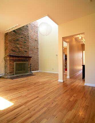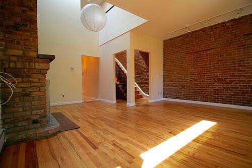 PARKING PLACE AVAILABLE. PETS OK. UPPER DUPLEX WITH PRIVATE DECK AND 2 WOOD WORKING FIREPLACES IN A BROWNSTONE LOCATED IN THE HEART OF FORT GREENE STEPS AWAY FROM SUBWAYS AND MINUTES INTO THE CITY. PARKING SPACE AVAIL. The duplex fixtures large, spacious rooms, with light shinning through the entire unit. Gigantic, gorgeous, parlour level, living room, with soaring open ceiling, and large, working fire place, with brick work extending to the upper floor. This is a real two floor, apartment, with a full second floor, it's own living room/rec space, and a huge master bedroom, that will fit a king sized bed, and loads of bedroom furniture, and has great closet space. All new, separate kitchen, full range, with dishwasher, and plenty of counter space to prep and cook. Separate dinning room off the kitchen that will absolutely accommodate a full dinning room table, and cabinets. The unit also has its own washer dryer. Plus on the second level is a big, terrace, patio deck, with wide open views. Located on a great block, intersecting Hanson Pl, and Fulton. Steps to great restaurants shops, and trains. Contact Mia Bize. licenced real estate broker. space Real Estate