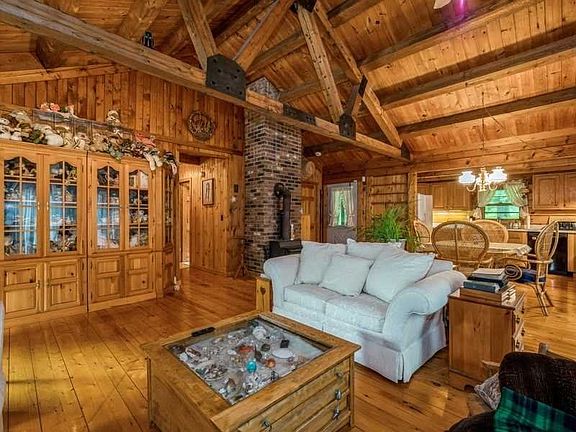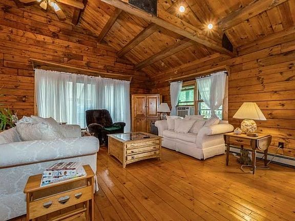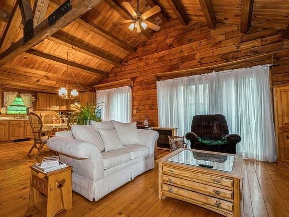 Sweet 2 bedroom log home is in need of some renovations. Great room shows well opening to kitchen. Full bath and 2 nice size bedrooms. Side room with hot tub is not safe to enter. Full basement with access to two car garage.