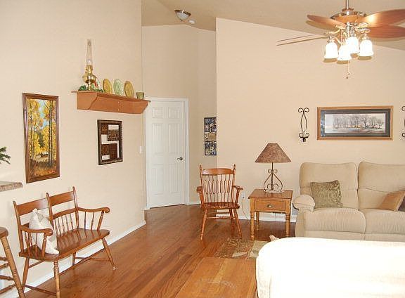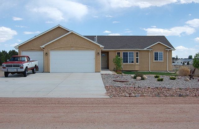 Newer Pueblo West rancher that offers a large open kitchen with beautiful cabinets, hardwood floors throughout the main living space, pantry and a large eating area. Split bedroom design with large master, walk in closet, and a double vanity bath. Lots of natural sunlight throughout this home with large picture window in the living room! A wonderful 432 square foot family room downstairs for those warm summer days. There is also a finished bathroom in the basement and lots of potential for additional bedrooms. There is also a large storage room with built in shelving. The laundry is on the main level, the garage is finished with lots of shelving and there is landscaping in both the front and back yards with garden areas and drip systems to trees and gardens. Very nice home!
