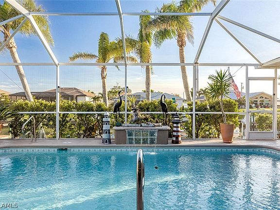 This coastal-themed 4/2/2 gulf access pool home spotlights the high ceilings, calming colors and wonderful updates and upgrades. The kitchen offers updated cabinetry, granite counters, newer appliances, a passthrough window to the lanai. The large family-room off the kitchen has high ceiling with skylights, built-in's and pocketing sliders to the lanai. Master suite has 2 walk-in closets, updated bath area with dual sinks, a tub to relax in after a long day and sliding doors for easy pool access. The split floor plan design offers privacy for all! 3 guest bedrooms on the opposite side of the home all with walk in closets and guest bath has exit to pool area. Relax your afternoon away poolside in the screened lanai with southern exposure. Fish and relax waterside at your dock and boat lift. Easy access to the river down the San Carlos Canal and 1 bridge. The dock has a snook light for night fishing and watching! Pool resurfaced '20, Roof '15, new gutters, interior/exterior freshly painted, newer double front doors and much more! Close to shopping and dining, schools and easy access to Fort Myers! No flood insurance required!