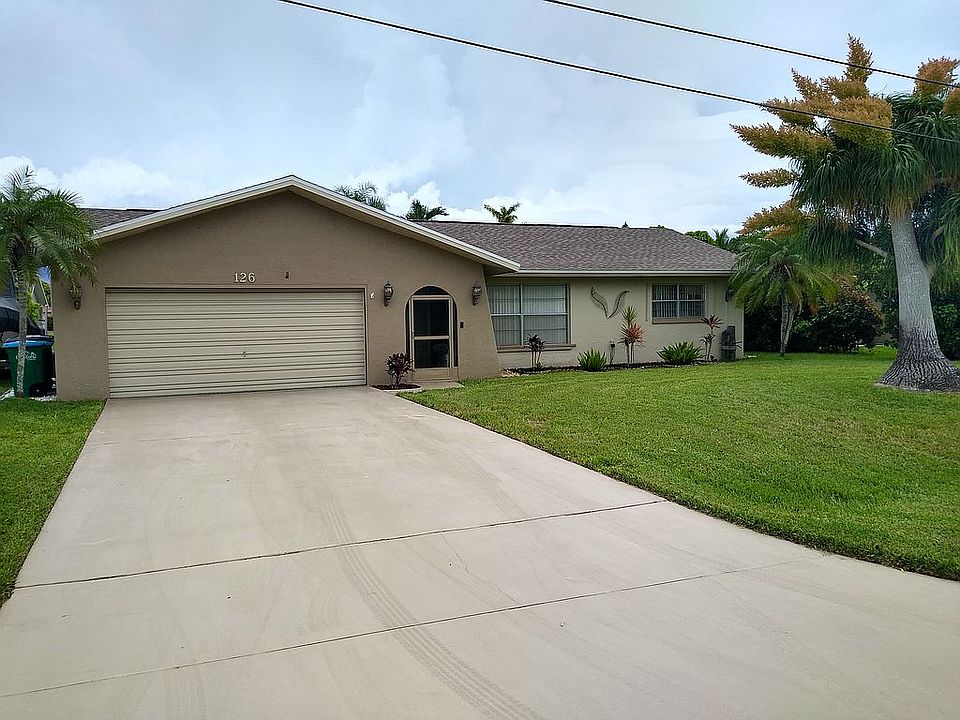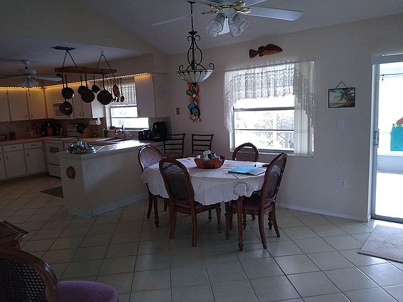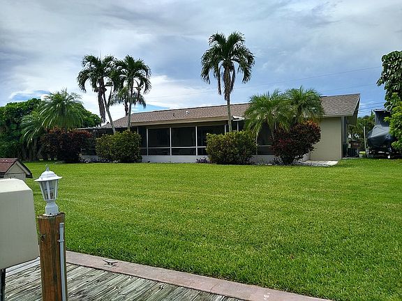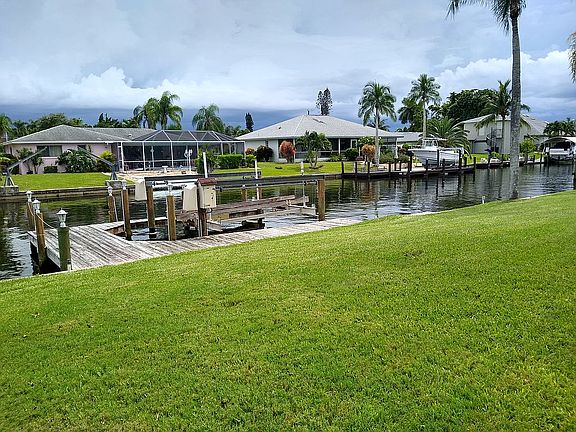 This is one beautiful well kept gulf access home. There is tile throughout the home. New in 2021 landscaping after new pool installation. Wrap around dock with 10,000lb lift, new pilings and composite decking 2021. New Dimensional shingle roof! City water and sewer - all assessments paid. Dual water sprinkler system. New pool in 2021 with 35'x48' pool enclosure including 12'x48' under roof! Dual water filter on sink and refrigerator. Storm shutters. Wall to wall shelving in garage. New water heater and new air conditioner in 2021. Great neighborhood. 15 min boat ride to gulf with only one bridge. A fabulous well kept waterfront home.