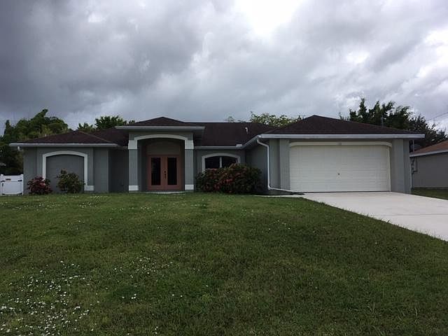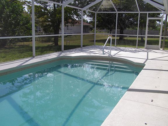 Newer (2004) Pool Home is SW Cape Coral. Close to Cape High School off Santa Barbara Lowes and Publix. 3 bedroom + den. Freshly painted inside and out. New stainless steel appliances. faucet and sink. New faucets and toilets in baths. New carpet in bedrooms, tile in den. Palm trees in front yard to be planted soon. Large under truss lanai. 3 sets of sliders. Pool bath. Oversized screened pool deck. Manual hurricane panels. City water and sewer. Pool service is included. Tenant pays for utilities and lawn care