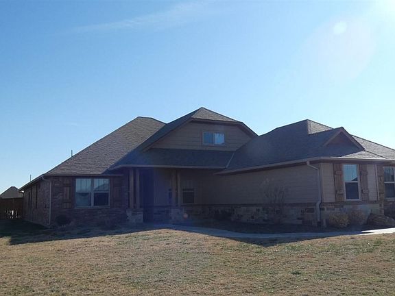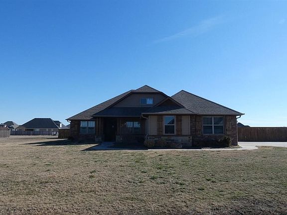 Tony Capuccio with Capuccio Dream Homes Realty is the property specialist regarding this home. TO VIEWTHIS HOME OR DEAL DIRECTLY WITH THE LISTING BROKER CALL OR TEXT TONY AT 580-585-2337 OR E-MAIL tony@tonysdrearnhomes.com. Welcome home to this exceptional, 4 year young home with rock accents located in secluded rural setting of Elk Creek addition nestled on I acre featuring lots of stylish touches and modern finishes from the light gray trim and darker gray walls to the wood plank ceramic tile floors and gorgeous granite countertops throughout to the soaring ceilings and decorative light fixtures. Just a short drive from Lawton yet located in popular Cache School district. Desirable floor plan with 5 nice-sized bedrooms and 3 full baths (including a Jack and Jill with 2 vanities) and laundry room.. The 5th bedroom could be an office/study with a barn door sliding and is just off of the living area. Master bedroom retreat features a massive closet with three levels of shelving, drawers and racks. Spa master bathroom boasts a jetted tub; a separate walk-in shower that has two shower heads; dual vanities and plenty of built-in storage. Open concept kitchen-living-dining has high tray ceilings, gorgeous light fixtures and features a beautiful gas fireplace in the corner! The well-appointed kitchen boasts stainless appliances including gas cooktop; a decorative vent hood; pot filler over the stove and an apron-front sink. Lots of curb appeal with covered front porch and covered back patio too Wood privacy fenced yard and storm cellar HOA dues are $200 annually. This home is jam-packed with all the elements of modern living and is just missing YOU to enjoy them!