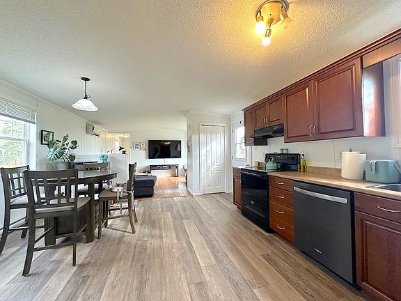 Welcome to this charming and spacious mini home, perfectly set on 2.3 private acres in a fantastic area. Offering a bright, functional layout and peaceful surroundings, this property is ideal for first-time buyers, downsizers, or anyone seeking comfort and quiet. Step inside to a large, inviting kitchen, complete with plenty of cabinetry and room to cook, dine, and gather. Just off the kitchen is a convenient mudroom/laundry combo, keeping everyday life organized and clutter-free. The living room features a generous picture window that fills the space with natural light, creating a warm, welcoming atmosphere. The primary bedroom is thoughtfully positioned for privacy and includes a full ensuite bathroom and a spacious closet - a true retreat at the end of the day. On the opposite end of the home, a separate hallway leads to two additional bedrooms and a second full bathroom, making it an ideal setup for families, guests, or a home office. Outside, enjoy the benefits of a large yard with mature privacy, perfect for kids, pets, gardens, or outdoor relaxation. A storage shed adds extra convenience for tools, toys, and seasonal items. With its peaceful setting, practical layout, and ample outdoor space, this is a wonderful opportunity to own a move-in-ready home on a beautiful property.
