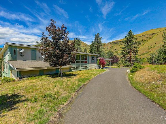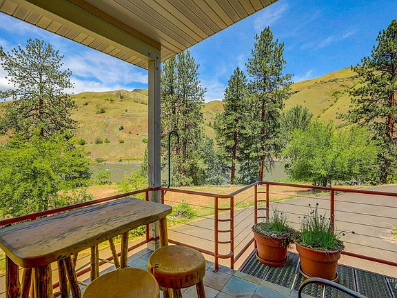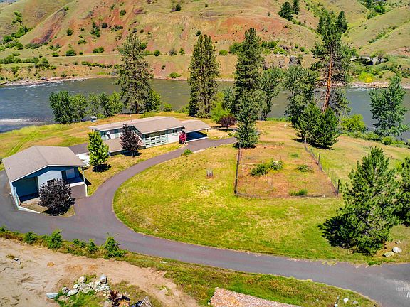 SALMON RIVER BEACHFRONT PROPERTY Fishing your idea of heaven? Relax at your own private oasis with 338 feet of prime river frontage. Custom architecture frames your canyon and river views perfectly. Quiet setting with Robber’s Gulch to the north and surrounding multilayered mountain views. Nearby Nat’l forests provide endless trails & recreation. Whitewater rafting and jetboating. Salmon, trout, bass and Steelhead fishing right off the beach below the house! Bonus upstairs office area, local river rock fireplace, hardwood floors, Central AC/heat pump. Primary bedroom suite features a private deck & fireplace. Garage space galore! 12’ RV bay and a 3 car drive through in the lower level. Detached shop has finished rooms, a bedroom and a 3rd bathroom and could be a separate living area. 3 bays are below with finished interior and 10' X 10' doors . Circle driveway is paved. 2.39 acres with Ponderosa pines, RV hookups, fenced garden, covered decks and patio. Away from road noise, just the music of flowing water.