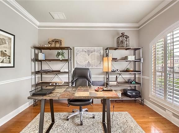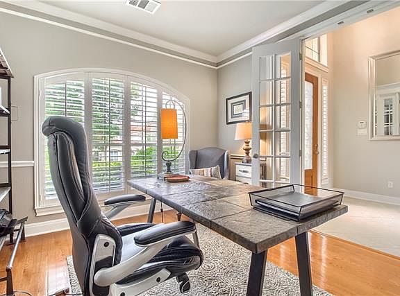 Exquisite details throughout. Stucco exterior, decorative glass entry door w/ side panels & upper arched window. A dedicated office w/ French doors & wood flooring. Formal dining room, crown molding, chair rails, upgraded wide baseboard trim, plantation shutters, tray ceiling & built-in desk. The home boasts a game room, media/theater room, a Jack & Jill bathroom & more. Enjoy spending time relaxing on the patio in the secluded spacious backyard w/ great views of all the green foliage. A must see home!!!
