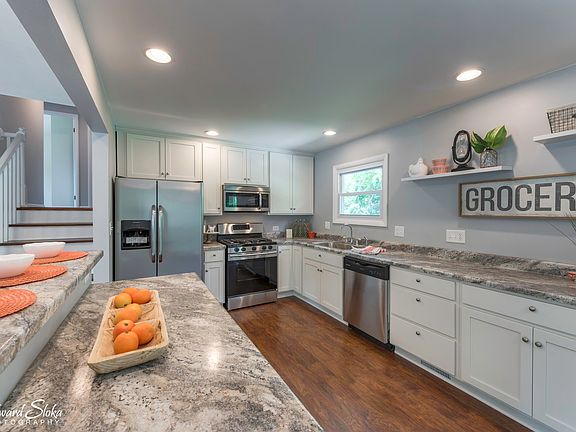 Now is your chance! Stunning renovation! Opened floor plan. Gorgeous new white kitchen, new stainless appliances, upgraded baths, dark hardwood laminate floors. new garden slider opens to large private patio in big yard. Freshly painted in today's designer neutrals, Generous bedrooms, good closets. Big Bright lower level FamRm, laundry/den & stall shower bath. All buttoned up for years of worry free living. Terrific location quiet street near schools, parks. Life is good in Crystal Lake! Previous contract fell as buyer could not get their home sold!