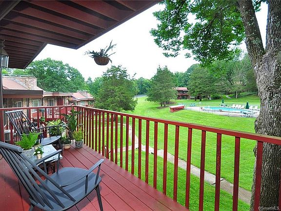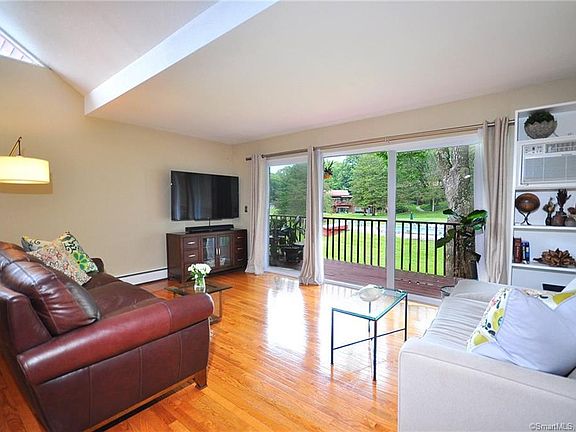Welcome to Foodbury! Light and Bright 2 bedroom unit with vaulted ceilings and open floor plan. Wood floors thru out main living spaces and wood burning fireplace. Updated bathroom and kitchen. Wall of windows with slider opens to covered deck and looks out to pool, rec area and community barbecues. Minutes to the shops, town amenities and many fine eateries. Condo fees include heat and hot water. Convenient commute to I-84.
