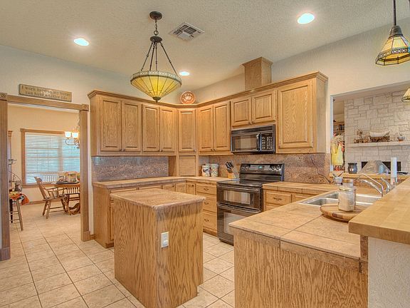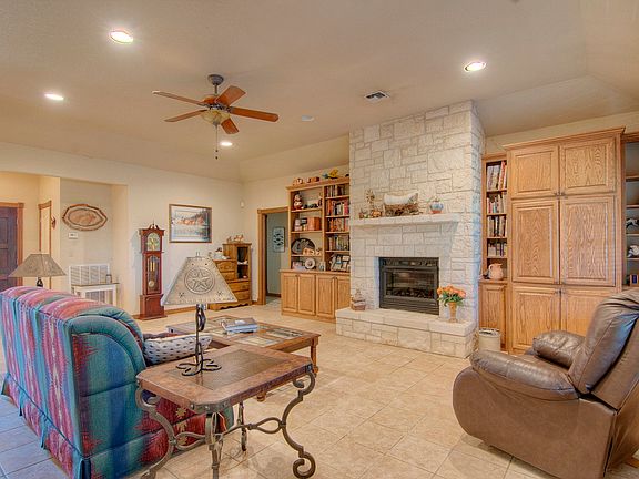 Great view with quick access to downtown Kerrville. Custom built home with wildlife exemption in place. Master bedroom has large on-suite, walk in closets, porch access and tall ceilings. Electric fireplace in great room is visible from kitchen, breakfast and dining room. Open floor plan with granite and tile counters and custom wood cabinets. 3 bedrooms with additional 4th room used as office.
