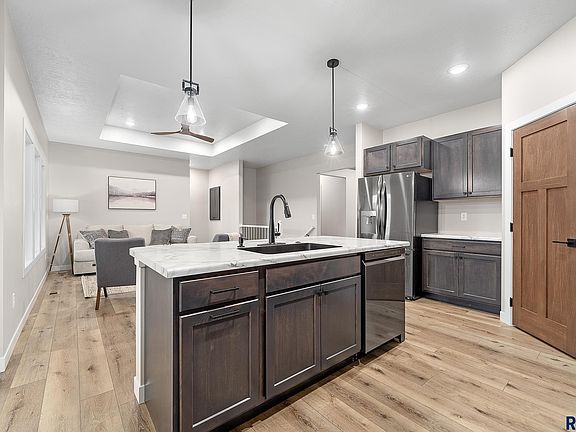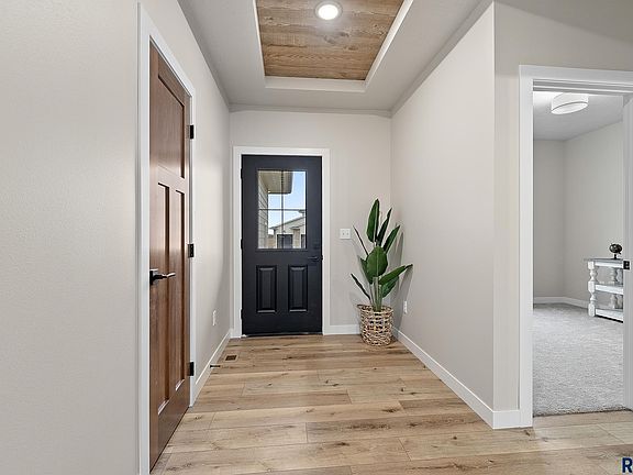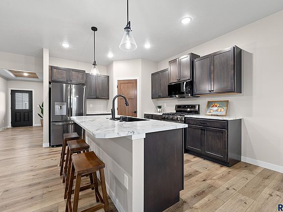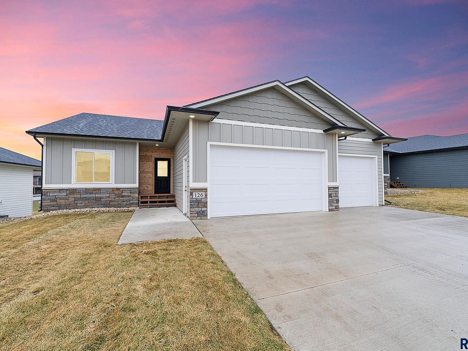 This home qualifies for Rural Development Home Loan, you may be eligible to purchase with no money down!! Walkout single family home with FULLY FINISHED BASEMENT! 5 bed, 3 bath, 3 stall garage with floor drain and plumbed/wired for heat. Don't miss an opportunity at this up and coming development in Valley Springs. Minutes from Brandon and Sioux Falls and in the Brandon Valley School District. Open floor plan throughout the main level as kitchen, dining and living rooms all flow nicely together. Covered patio with composite decking. Kitchen has large pantry, black SS appliances with gas stove! 3 beds on the main level including the primary suite with its own 3/4 bath, 2 sinks and walk in closet. Main floor laundry. Downstairs is a large family room with walkout patio. An additional 2 beds and full bath. Bonus Theater Room, or perfect for exercise, an office or hobby room; make it your own! Large utility room for tons of storage. Garage is wired/plumbed for heat and has a floor drain.