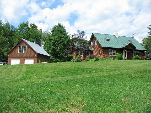 This three bedroom log home on 15.77 private acres is country living at its best. Sited on open and wooded land in North Randolph this property features a southern exposure and is perfect for gardens and animals. Property includes an 840 sq. ft. heated home office with cable internet above the two car garage. Natural woodwork throughout with a 1st floor master bedroom and a new standing seam roof. Plenty of open space for raising a family and entertaining. Conveniently located 1/10 of a mile off of Route 14 and 10 minutes to Interstate 89. This beautiful country property has the feel of a secluded cabin in the woods but with easy access to all major amenities.