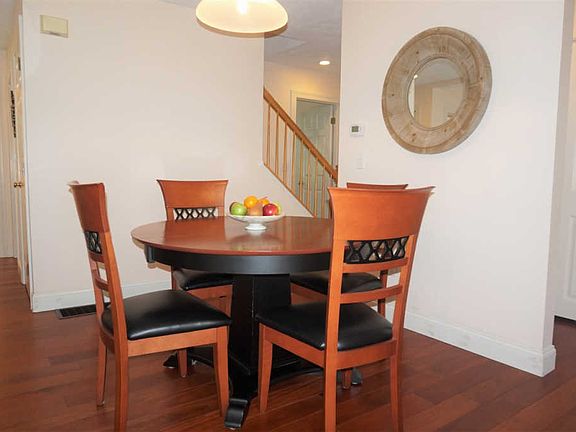 Welcome to sought after Spinnaker Point Condominiums! Spacious end-unit townhome, 3-4 bedrooms, 3 baths, 1-car garage with storage above. Open concept kitchen / dining & living room with fireplace has 2 (new) slider doors to privately set wrap around deck - makes for a great place for indoor /outdoor living & entertaining. The interior features new mahogany wood floors, updated kitchen and bathrooms, wood burning fireplace and lots of natural light. First floor Den/4th bedroom is a great space for overnight guests. 3 bedrooms on upper level including master ensuite. Also features central a/c, garage plus assigned parking, entire home updated & renovated in the past 7 years. The amenities of Spinnaker Point are unsurpassed: On-site adults only health club memberships includes indoor pool & track, sauna, indoor basketball court, fitness gym & more. Plus a private outdoor pool with pool house bathrooms/changing rooms. Tennis & Pickleball courts. Onsite management ensures quiet & well cared for neighborhood. Spinnaker Point is pet friendly & just a short one mile walk or ride to downtown Portsmouth with an tree lined sidewalks. Market Basket, I-95, and shopping all within five minutes. Public transportation will bring you out to Pease Trade Port, C and J Bus hourly to Boston and direct to NYC. Make this your new home or buy for an investment.