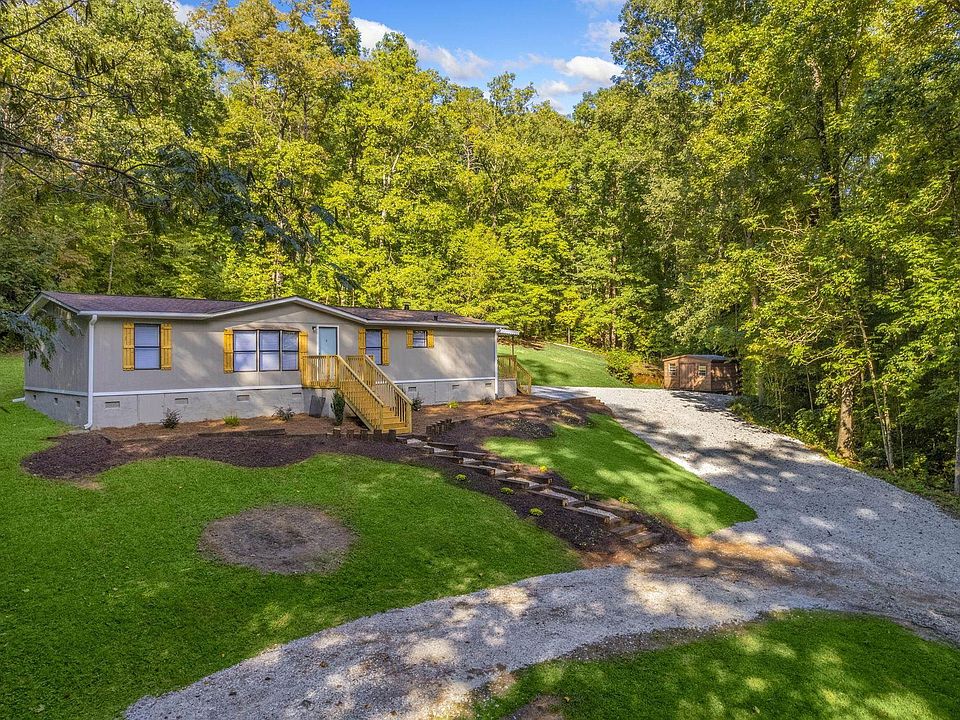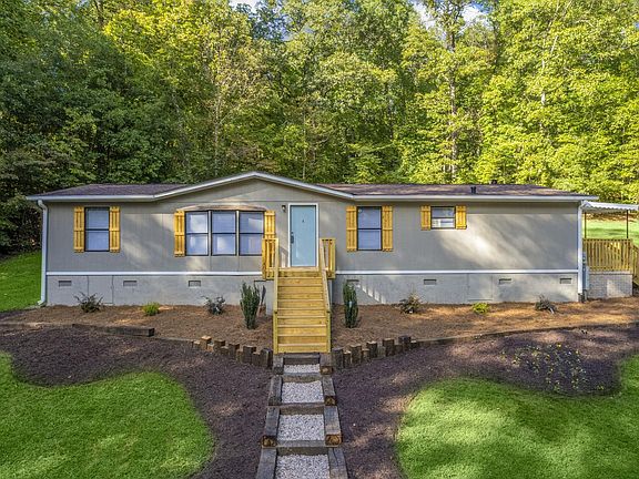WHY PAY RENT??? Renovated 3 bedroom 2 bath home on a private secluded wooded 5.12 +/- acres. Turn key ready to move in with new light fixtures, fresh paint, new granite counter tops, new flooring. Den features patio doors to back deck and gas log fireplace. Large open Living room area, bay window and kitchen with breakfast bar, window blinds installed, new stainless steel stove and stand alone microwave. Walk-in Laundry room with side entrance door to large covered side deck. Master bedroom has large full bath with oversized tile shower granite counter top and a walk in closet. Home is on a permanent foundation and possible FHA financing available. Two out buildings, one with power, and a creak that runs on and off the property line. Plenty of parking and a circular drive in front. Minutes from Table Rock State Park and area parks and Lakes. Call or text 24/7 today have a private showing.