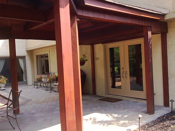 Completely updated in the highly desirable Hamptontowne development. Pull up to the manicured flower beds and mature trees . Enter through the cut glass double entry doors into the foyer with Brazilian cherry hardwood that continues into the living and dining rooms. There is a impressive custom spiral staircase and halogen spotlights. Enter into the large kitchen with a seating area with a large custom window that looks out to the large back brick and paver patio. The dining room has large double doors that exit to the custom redwood gazebo with a ceiling fan and spotlights and pavers. This connects to the sunken brick patio and paver deck. The backyard has mature trees, is completely fenced in and semi private from the neighbors. There is ample room to add a pool if desired. The patio and gazebo are private. Back into the house from the sliders into the den with a plant window, vaulted ceiling and beams with windows at the second-floor level into the master bedroom. Off of the kitchen is a powder room and bonus room that has a door out of the side of the house to the driveway. There is a two car garage with a built in work bench and storage. The basement is very large and finished with barn wood and beams. There is a full perimeter drainage system with a sump pump and electric backup. The second floor has 4 bedrooms, the master has a vaulted ceiling, private seating area, master bath, two walk in closets and linen closet. There are three other bedrooms and a hallway bathroom. Pull down steps to the attic which is 50% floored, for extra storage. Owner is a licensed real estate agent.