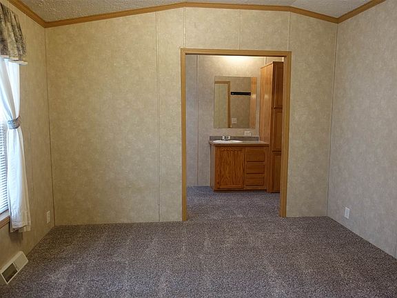 This 2 bedroom, 2 bath 2004 manufactured home has been well cared for and is in like new condition. New carpet throughout. Vaulted ceiling in living/dining/kitchen area. Lots of cabinets in the kitchen. Built-in desk in the dining area. Master bedroom has a walk-in closet & a private bath with corner jet tub & separate shower. All appliances are included. Skylights in both bathrooms. Forced-air natural gas furnace & central air. It's move in ready just for you! The exterior is vinyl sided with an asphalt shingled roof. Covered deck to relax on & listen to the creek/spring that runs along the back of the lot. Storage shed and mature trees. 2 car concrete parking pad. Located in a well maintained park close to downtown Spearfish.