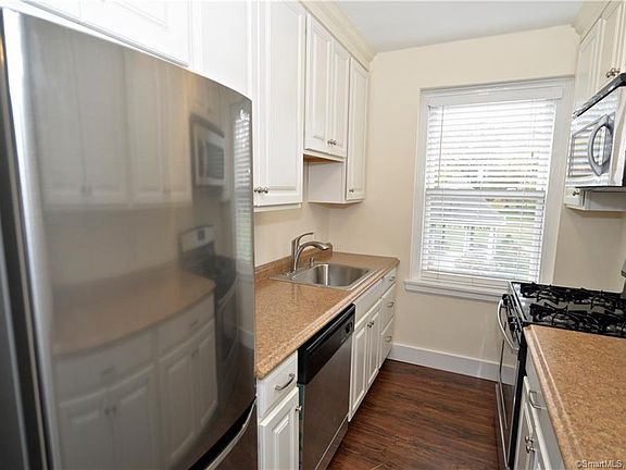 BACK ON AFTER HARDWOOD FINISHED. If you saw before, come look at it now! One Bedroom, with a Den and an extra room that can be a 2nd bedroom. Freshly painted Woodside Green Condo; Updated Kitchen with Self-closing Cabinets, Stainless Steel Appliances, Gas Range, Microwave and Dishwasher. New Bathroom Floor, Hardwood Floors throughout. The Living Room has a nice nook area for eating. There is a new HVAC system in the Bedroom, Den HVAC updated. Beautiful grounds and picnic area. Close to Ridgeway Shopping Center, a short trip to the train station, library, restaurants and all that Downtown Stamford has to offer. The laundry is in Building #124. Water, Sewer Usage and Gas for cooking included in CC. New Electrical Panel.