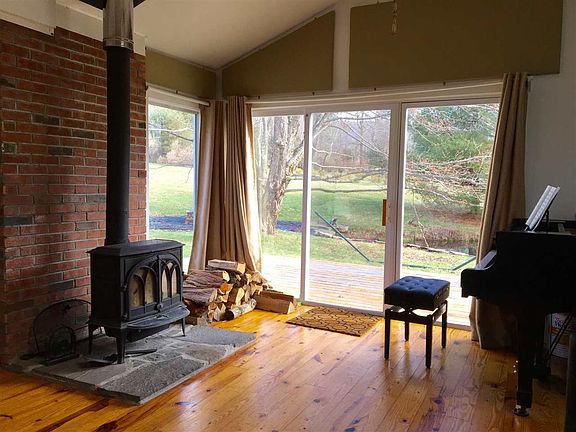 ABSOLUTE CHARM SITED IN A ROLLING MEADOW WITH ORGANIC GARDENS AND POND. This is that special property that has so much to offer while being easy to manage. Enter bright well thought out rooms with wood floors throughout. The Cooks kitchen is perfectly sited in the center of the house making it ideal for entertaining. Cozy library/den with beamed ceiling. Expansive Music Room (could be third bedroom) with full bath, woodstove, cathedral ceiling and wall of glass leading to large deck overlooking pond. Beautiful rolling land under open skies. Organic gardens with water supply. So much to offer.