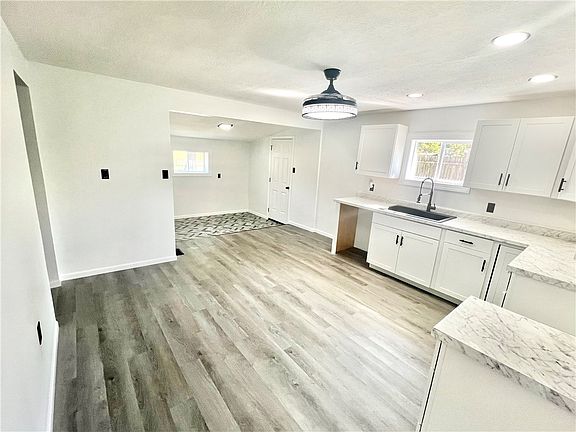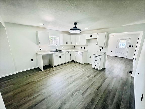 Bigger than it look & very nicely updated! This 2 bedroom 1 story home is ready for immediate occupancy and offers A LOT OF UPDATES including all new siding, new modern light fixtures and ceiling fans, new flooring throughout, brand new kitchen (cabinets, sink, fixtures and countertop), complete new full bathroom with tile floor and back splash, all new plumbing, updated wiring and outlets, replacement windows, all new beautiful wood interior doors and new exterior doors, trimwork, fresh paint, complete basement waterproofing & more! One story living with main floor laundry & spacious rooms, plus plenty of parking and a metal roof. SUPER LOW TAXES!