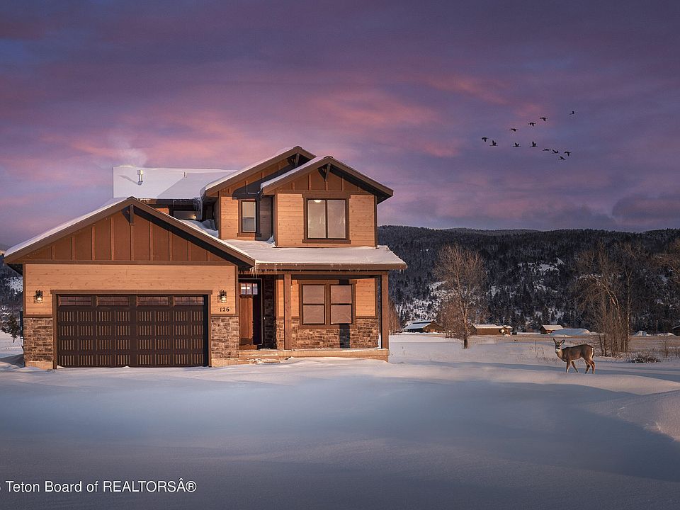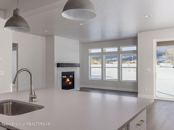 Overlooking community open space, the community pond with golf course for hundreds of acres to the East, this stunning home offers views in all directions. This ''Traverse'' model home constructed by Fieldstone Homes features quality finishes including dovetailed cabinetry, stainless appliances, Moen fixtures and Shaw flooring throughout - all hand-picked by custom interior designers. The Traverse model includes a main floor primary suite with tiled walk-in shower, cozy fireplace, HUGE pantry, powder room and den. Upstairs, two additional bedrooms, a full bath and entertaining loft area compliment a FULL unfinished basement. Teton Reserve offers public golf, Nordic skiing, community water and fiber.