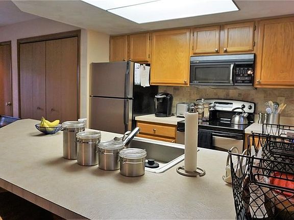 This interior Arosa floor plan offers inside and outside benefits! To start inside the Mitsubishi heating/cooling is supplied by a heat pump with units in the 3 bedrooms! Then there is a stainless fridge, dishwasher, stove, newer side by side washer/dryer, 2 hot water heaters, newer carpet/vinyl, 4 Velox skylights, & 2 master bedrooms! Outside the summer amenity center with tennis courts & heated pool are steps away along with a shuttle bus stop! Off of the painted back deck is a ton of common green yard space that is great for playtime. There's a master bedroom on the1st and second floor which is a relief for anyone who has a knee or hip problem! In the living room corner is a stunning floor to ceiling mountain stone faced fireplace with electric insert, it is an eye catcher! The upper master bedroom has a soaking tub for recovering from those wonderful mountain adventures. Original owners and the property has never been rented. Furnishings and accessories are included.
