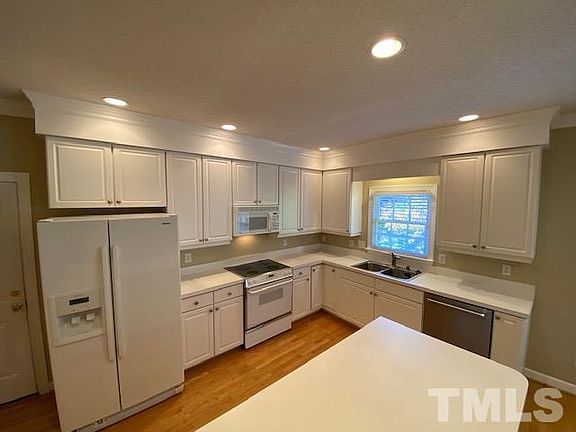 All brick 3 BR/2.5 BA ranch home on cul-de-sac in prime Cary location close to hways, shopping, dining & more! Light & bright open floorplan w/gleaming hardwoods, LR/DR w/vaulted ceiling, gas log FP, french doors to lg. deck & private backyard. Kit w/center island, all appliances, lots of counter/cabinet space. Master w/lg WIC, BA w/garden tub & walk-in shower. 2 addit BRs & BA. 2 car garage. Landscaping included! Landlord believes residence contains approx 2033 SF of LA, Tenant shall verify