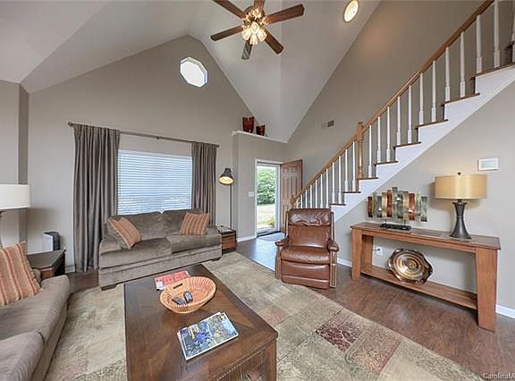 Not a thing to do but move in and enjoy this great Master down home on cul-de-sac lot! Beautiful & private fenced backyard awaits you for summer gatherings on the patio. Inside, a 2 story cathedral ceiling lends light & airy spaciousness the moment you walk in. New carpet in BRs and updated flooring throughout adds to the updated feel. Fresh neutral paint & stylish modern lighting in DR and Breakfast Nook offer custom touches. New appliances will add to peace of mind for the inside, while outside home has had all new gutters, newer HVAC (2015), plus Roof/windows/siding replaced in 2013! Master Ensuite has dual sink vanity, plus Walk-in closet. Upper level leads to hallway open to and overlooking GR below. Here you'll find 3 additional bedrooms, plus a full bath. 1 car garage with new door in 2014, plus termite bond in place. Low HOA fees & Mooresville Graded Schools are the icing on the cake. Hurry, this one will not last long!