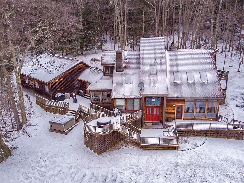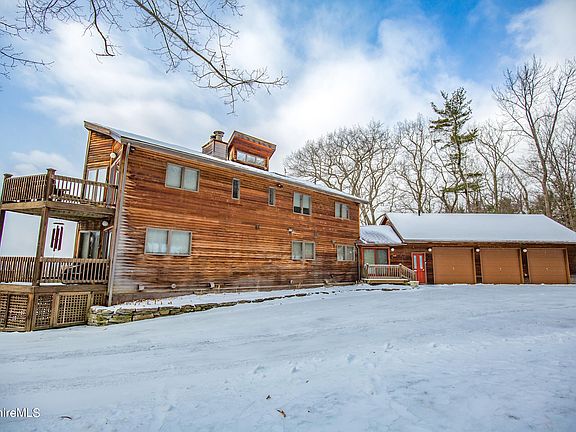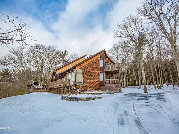 BIG VIEW, PRIVACY AND THE ''SOUND OF SILENCE'' is what you have to look forward to in this Contemporary with a s/w exposure washing the home with amazing natural light. This multi-level design offers living with peace & tranquility for both gathering & quiet time alone, all while capturing the nature surrounding you on 5+ acres. With 3 br's,4 bths, an office, open kitch/dining w/cozy den, 3 fp & fabulous Great Rm as well as an attached 3 car gar for all your ''country toys'', this home will surround you with warmth & comfort this winter, all while enjoying the vista or snow shoeing out the back door. Come spring...and yes, Spring will come, venture out on the spacious decking, hop in the salt water hot tub & enjoy the hundred of varieties of perennials that will bloom from Spring to Fall!