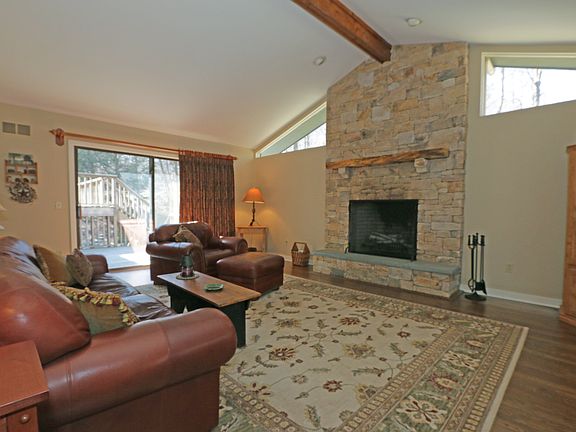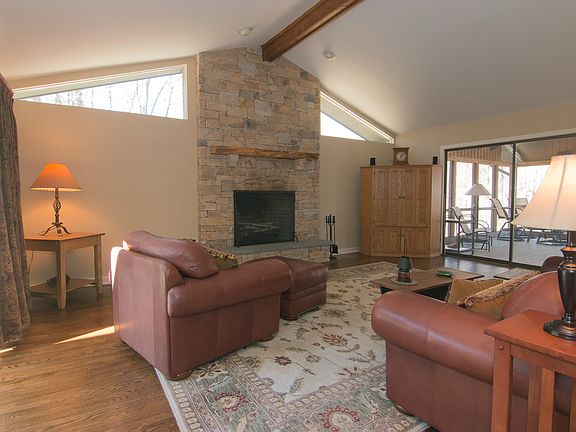 Meticulous, pristine home surrounded by towering trees and lush lawns offering great privacy in a desirable neighborhood. Appealing layout with walls of windows that bring the outdoors in. Architectural elements abound; beamed and cathedral ceilings, angled windows and skylights add drama and warmth. Surprising dimensions include a beautifully-paneled media/recreation room and spacious screened-in porch. Total includes 866 square feet in lower level.