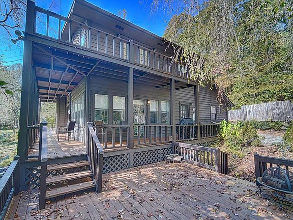 Cozy Creekfront Cabin with lots of Character located between Blairsville and Blue Ridge in a very private setting and no deed restrictions. This rustic home has a large living area, good mixture of wood and drywall, huge master suite and den upstairs, 4 fireplaces, wrap around porch, pond and a fast flowing creek all along one side of the property. No close neighbors and the home and grounds and have been well loved and maintained. An opportunity like this doesn't come along very often. Original structure was built around 1970 but was added on to and completely redone in the early 1990's.