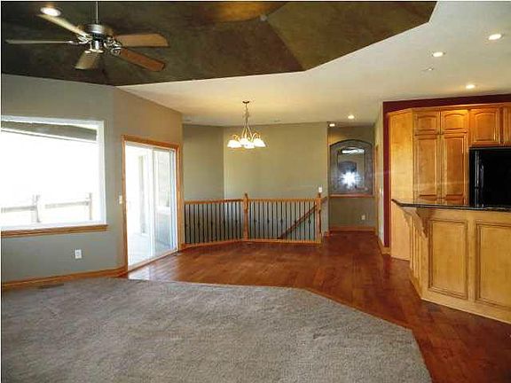 This gorgeous 4 Bedroom 3 Bath Haysville home is a beauty! This home, with stone front, features a 3 car attached garage and resides in a quiet neighborhood with secluded back yard and mature trees. Throughout the home you will find custom features, and beautiful decorative ceilings. The living room has a gas stone fireplace with electric start and is adjoined to the dining area for communal entertaining. Hickory flooring in kitchen and dining area. The kitchen features granite countertops, a large pantry, under cabinet lighting and beautiful Maple cabinetry. Relax on the large covered deck off the dining area and master bedroom, or enjoy the whirlpool tub in the master bath that boasts 2 vanities, separate tub and shower and walk in closet. The huge downstairs family room features a wet bar and large view out windows with an additional bath and bedroom, and a large storage room along with an additional unfinished room. Ceiling fans, lots of natural light, and a separate laundry room on the main floor add to this home. Come see it today!