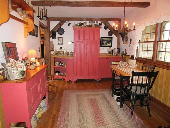 Country Custom Home waiting for you! Unique design w/ open living-dining-kitchen, all w/ beamed ceilings. Quality kitchen cabinets & corian counters, plus custom-made pantry. Spacious master suite w/ updated bath & large walk-in closet. Wonderful storage in second floor attic. New vinyl siding & metal roof. Coal & wood stoves make for a truly economical home. Private back yard w/ gardens & deck for dining. Located on a quiet back road in easy commuting location, this home has it all! Ask about MBG!