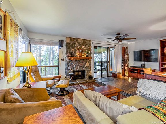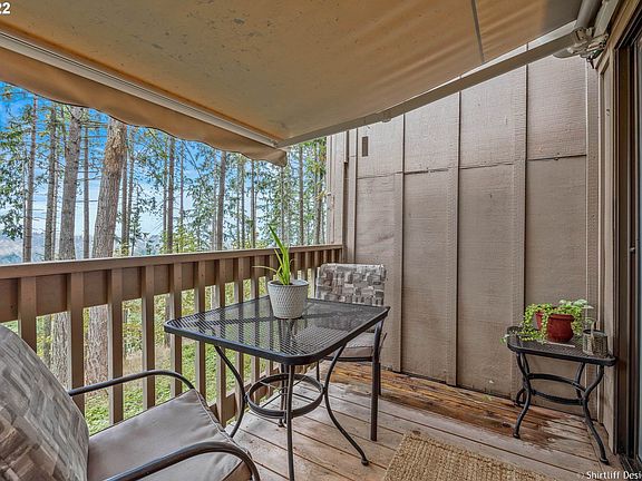 Lovely updated/remodeled condo in S. Eugene and in immaculate condition! Easy access to Ridgeline Trail. Living room features cozy stone fireplace w/ live edge wood shelving. LVP, tile & carpeted flooring. Ceiling fans. Kitchen has Corian counters, filtered water dispenser, pantry, BI microwave. Owners bed w/ separate bath, quartz counter & washer/dryer hookup area. Enjoy the views from the covered deck off dining area. Community amenities: Pool, clubhouse, sauna, weight room & hot tub.