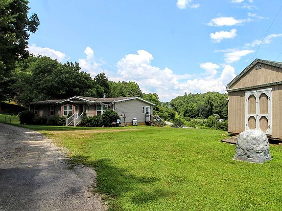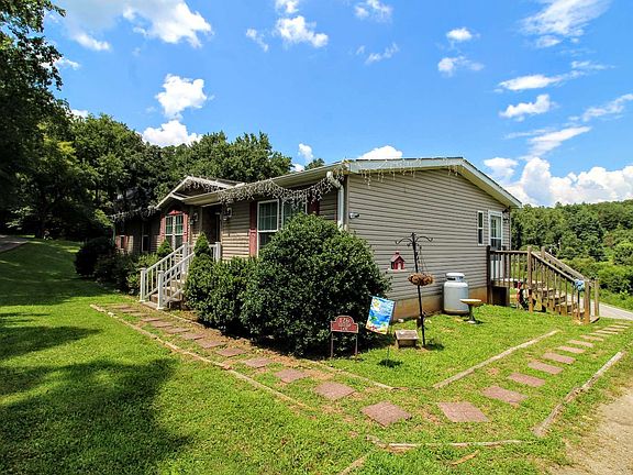 Lots of home for the money, double wide on permanent foundation and split floor plan, den and family room each with their own wood burning fireplaces, master en-suite, large kitchen, gas stove, lots of counter space and cabinets, large mud/laundry room. Big covered porch looks out to a great mountain view. An out building to store all of your toys! Conveniently located to hospital and Folk School.