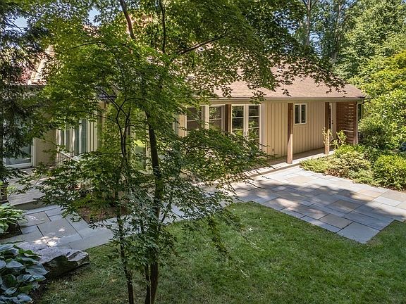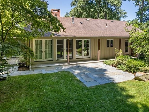 Elegance & simplicity abound: Spacious, light-filled, fully renovated ranch in prime spot. A wall of glass doors in the striking living/dining area opens to a deck & patio overlooking the lush rear yard. Living room features gas fireplace w/ Ashfield stone surround. Ashfield stone also stuns in the kitchen counters & island. Maple cabinets, gas cooktop, SS appliances, pantry & addt'l storage. Off the dining area, a 4-season sunroom w/ sliders to deck & patio. Primary bedroom opens to its own deck & patio & includes a large walk-in closet & full bath. 2nd bedroom has built-in desk & shelving, perfect for office space, guest room, or playroom. Both the 2nd & 3rd bedrooms have double closets. The mudroom has a washer/dryer & connects to a generous storage room w/ utility sink & ample shelving. Basement waterproofing system, all new windows, central air, Ipe decks w/ cedar posts, propane-fueled generator, storage shed, 1-car garage &additional storage area. See attached feature sheet!