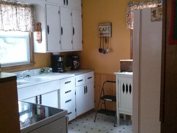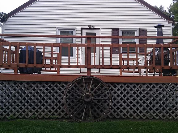 1 story home built in the 1950's. Main floor has living room, kitchen, entry, full bathroom, 2 bedrooms. Full basement is partially finished with half bath, laundry, additional room, storage, sump pump, natural gas boiler, electric heat and fujitsu general air conditioner, natural gas fireplace, appliances included . Large 20x20 deck off the back with fenced in back yard, vinyl siding, shingles in 2011.Very Neat!