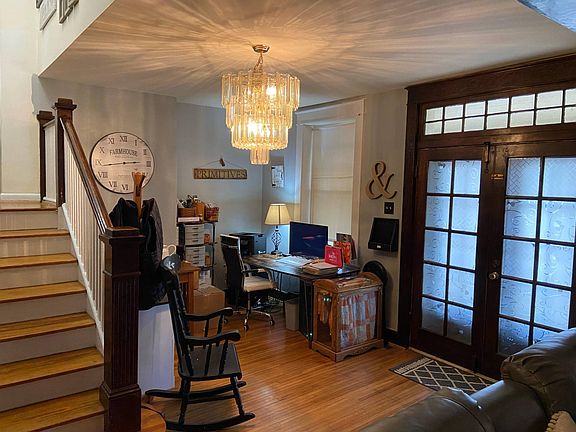 Stately 2 Story Home on Large Corner Lot with Great Updates. Entering from the covered front porch, you'll see a grand foyer with original hardwood flooring and beautiful mouldings. The formal living room offers a fireplace with attractive built-ins and opens to a spacious formal dining room. French doors from the dining area lead to another covered side porch. The kitchen, equipped with updated stainless steel appliances, offers pantry, recently installed tile backsplash, updated flooring and paint, and mud room area with lots of storage. A bedroom with attached full bath complete this main floor. Upstairs are 4 generously sized bedrooms, including the master suite that has attached bath, which has been fully remodeled and offers tiled walk-in shower. The hall bath upstairs has also been completely remodeled and offers high-end, modern touches. A great bonus this home offers is 2nd story laundry, with included washer and dryer! Other great features are an updated gas furnace, partial basement, and 2 car detached garage. If you're looking for charm, character and lots of space, this is the home for you! Call today to schedule your private showing!