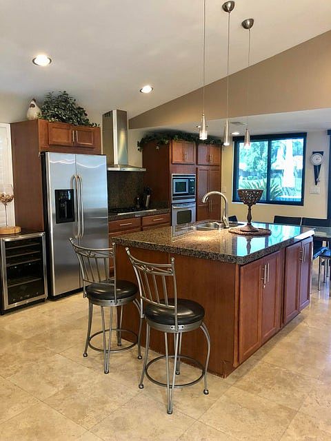 Experience luxury living in this spectacular 3000 Series condo featuring a spacious den. Completely remodeled and beautifully decorated with the finest finishes, it boasts a gourmet kitchen with granite countertops, new cabinetry, and a wet bar complete with an icemaker. The converted atrium enhances the open feel, while flat-screen TVs and surround sound elevate your entertainment experience. Enjoy the thoughtfully selected lighting and exquisite slate flooring throughout, including the patio and bathrooms. The extended slate patio, facing east on the fairway, is perfect for entertaining, complete with a gas barbecue. This condo is truly an entertainer's dream!